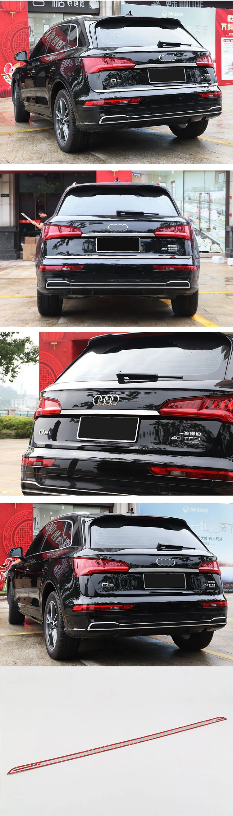 Stainless Steel Exterior Kit For Audi Q5 2017 -2022 Rear Trunk Tailgate Door Molding Up Streamer Strip Cover Trim Accessories