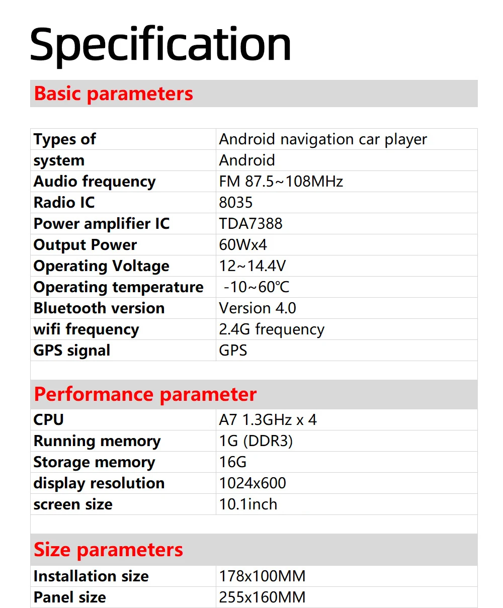 | Special Feature | Built-In Speaker/Microphone, Wifi Function, Support Steering Wheel Control, Support Can-Bus |